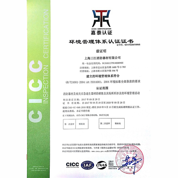 ISO14001環(huán)境管理體系 認(rèn)證證書
