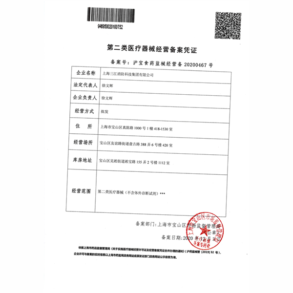二類醫(yī)療產(chǎn)品經(jīng)營(yíng)備案證書
